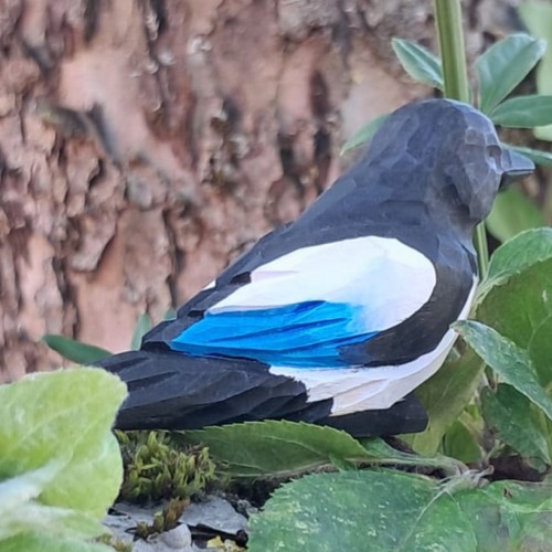 The Magpie is a type of Crow. When seen close up you can see that its' black plummage has a blue sheen to the wing feathers. They can weigh up to 250g. They can be found worldwide.